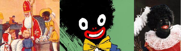 From (L) to (R)- Zwarte Piet and Sinterklass, Golliwog, blackface Zwarte Piet masquerader