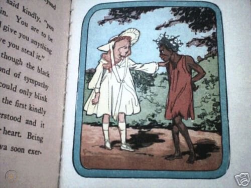 While Stowe blames these behavioral and physical characteristics on slavery, Topsy would be picked up by minstrel shows, illustrators, and later films, who enhance these qualities to make her the quintessential Picaninny. With each rendering, she becomes wilder, more grotesque, and less human–now far from whatever antislavery intent Stowe may have been seeking to create. Much as in Uncle Tom’s Cabin, Topsy is contrasted to Eva, the slave owner’s moralistic daughter whose whiteness and angelic innocence is her polar opposite. Topsy and Eva appear in numerous illustrations and books. There was even a Topsy-Turvy doll: one side Black, the other white. Perhaps most famously Topsy and Eva were recreated into a popular Vaudeville act by two white sisters, Rosetta and Vivian Duncan, which became a 1920s silent film which had D.W. Griffth, of Birth of a Nation fame, as a director.