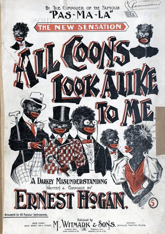 Hogan, Ernest. All Coons Look Alike to Me: A Darkey Misunderstanding. New York (49-51 W. 28th St., New York): M. Witmark & Sons, c1896.