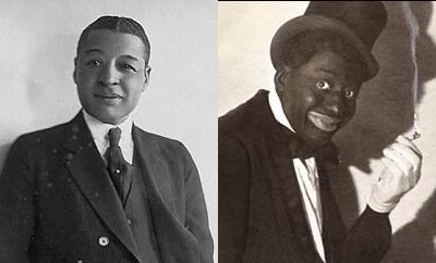 The dapper Bahamain-born Bert Williams (L) in blackface (R) | Image courtesy of Reduced Shakespeare Company