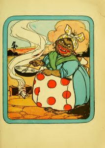 Black Mumbo as grotesque Mammy figure from, Little Black Sambo story book.