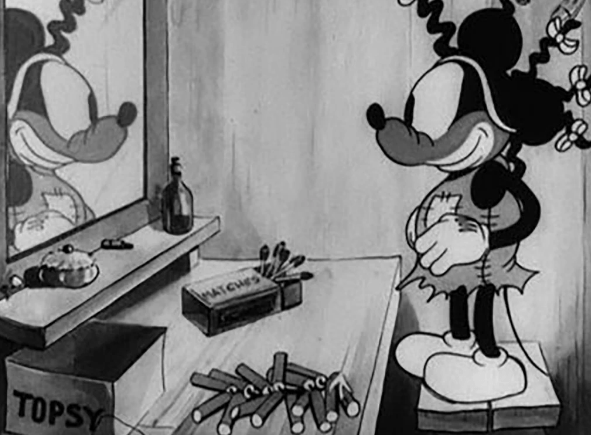 Mickey Mouse in a Disney short, as a blackface minstrel Topsy. (1934)