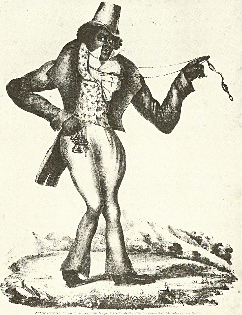 Detail from sheet music cover of “Zip Coon”, 1834.