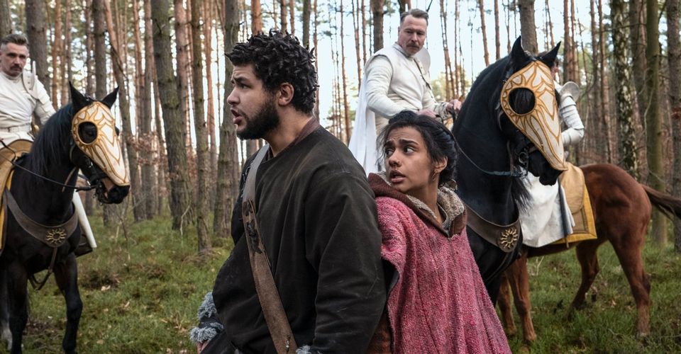 So who else is on the road heading to Tar Valon? The Tinkers–joined by Perrin (Marcus Rutherford) and Egwene (Madeleine Madden). It’s all chuckles and jokes with the Tuatha’an until they’re all stopped by some Children of the Light, led by Eamon Valda (Abdul Salis), who we met before. He’s coming asking if the Tinkers know anything about the False Dragon. And that might have been all, if he didn’t also spot Egwene and Perrin, who he’d last seen in the company of Moraine. Damn. Valda demands the two be given over to them. The Tinkers refuse. Using their non-violence ethos they link arms and try to turn the other cheek–for which they get beaten bloody. Aram (Daryl McCormack) tries to lead Egwene and Perrin to safety, but some Children of the Light surround them on horseback, knock him (Aram) out and capture the two. Klan Cloaks are THE WORST!