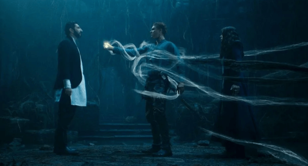 So let’s talk more about what I liked with the episode. The opening with Lews Therin was phenomenal! I hope we continue this trend of showing us the past in these beginnings. I thought it was great to see the blossoming relationship between Lan and Nyaneve. Really liked how they did the Blight, which I know would be difficult to re-create. They still managed to convey its creepiness. Fares Fares makes a good Ishmael! Just as dark and arrogant as you’d expect. And it’s a great way to start talking about the Forsaken.