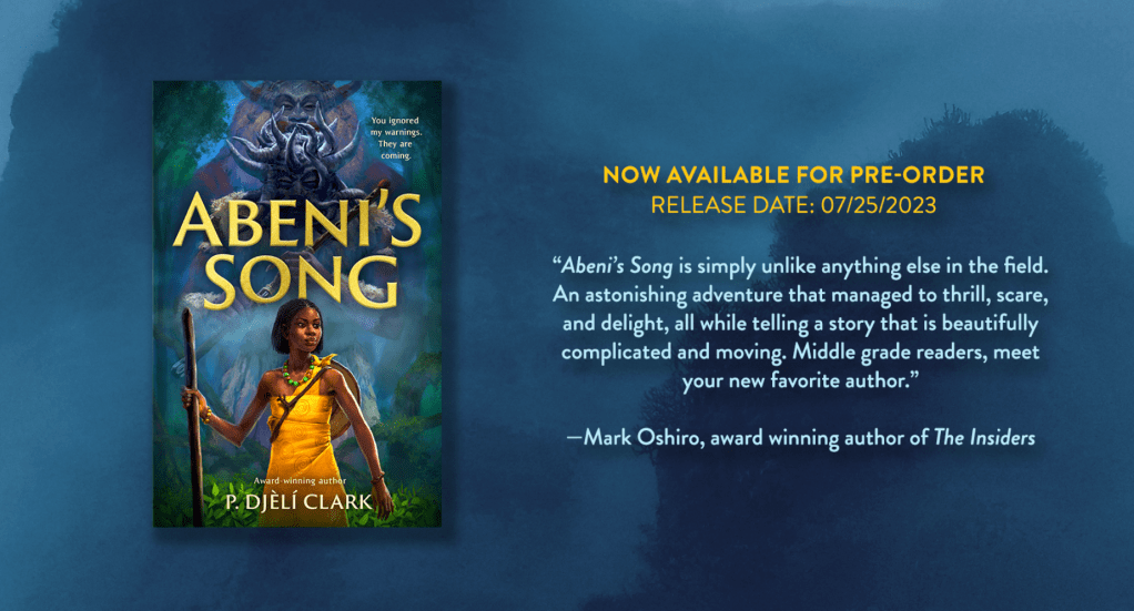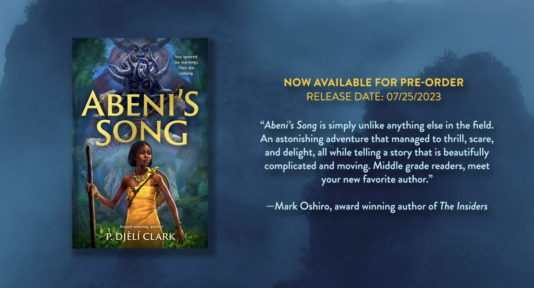 Abeni’s Song by award-winning author P. Djèlí Clark is the enchanting beginning of an epic West African and African Diaspora-inspired fantasy adventure for middle-grade readers about a reluctant apprentice to magic and the stolen villagers she sets out to save.