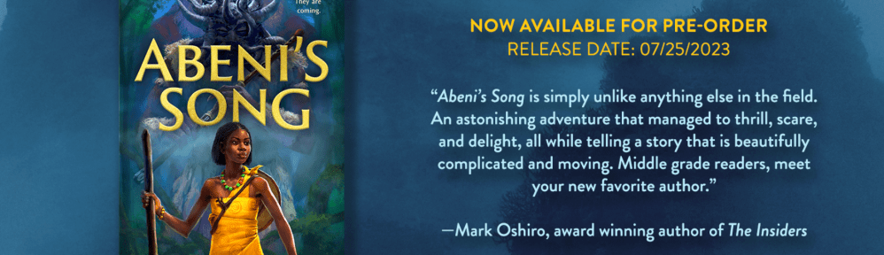If there was one thing that so many of those early fantasies lacked, it was the chance to see someone who looked like myself represented in the characters and cultures. When I set out to write Abeni’s Song, I filled it with the diversity I’d so longed for in my childhood, bringing some of those familiar themes to a new setting, with a new perspective and vision. Drawing on African and Diaspora myths and folklore, this uplifting story is meant to appeal to middle grade and young adult readers (as well as adults who are still kids at heart!) searching for that same heroism and adventure, within more diverse and fantastic worlds waiting to be explored.