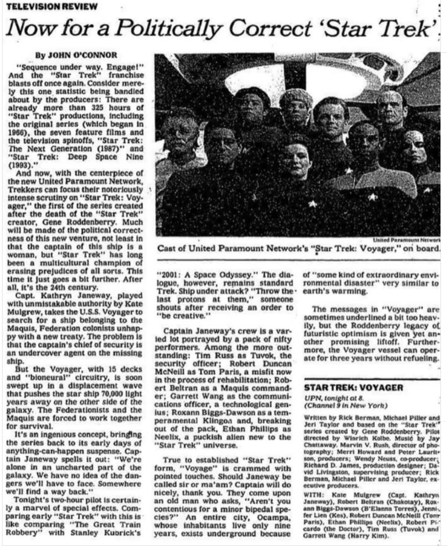 There wasn’t social media and a ready made grievance industry eager to echo white fan guy tears about diversity in Trek back in the day. But I was there Gandalf. And I can tell you it existed. The complaints about Tuvok as a Black Vulcan? The sexist rumblings about Janeway from inside the house? The cry of political correctness about both DS9 and Voyager? The way they were always seen as incapable of meeting the TNG standard of holy grail?. It was there. It was present. It was the same lame ass complaints by the same lame ass people.