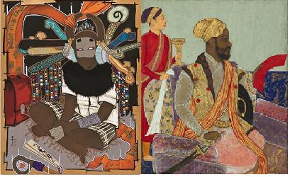 *photo: (L) “…hold on…”–Erykah Badu, 2009 by artist iona rozeal brown- Courtesy of Robert Goff Gallery (R) Muhammad Khan, The Noble Ikhlas Khan With a Petition by Muhammad Khan (17th century), India. c. 1650. in San Diego Museum of Art